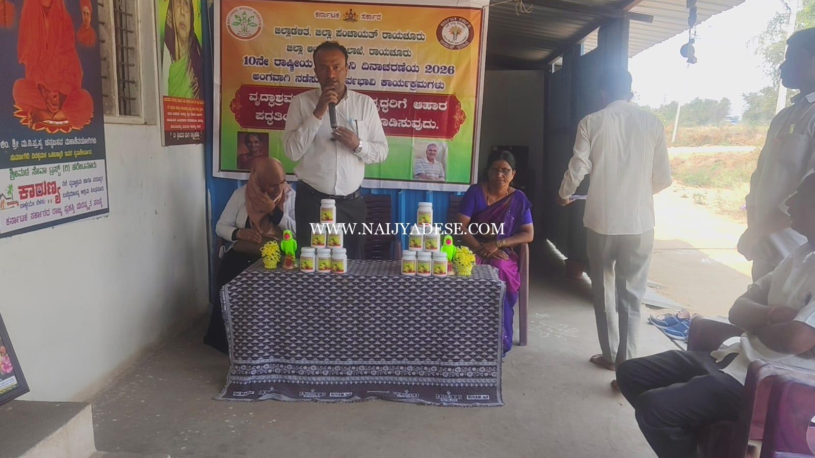 ಸಿಂಧನೂರು — ಜಿಲ್ಲಾಡಳಿತ ಜಿಲ್ಲಾ ಪಂಚಾಯತ್ ರಾಯಚೂರು ಹತ್ತನೇ ವರ್ಷದ ರಾಷ್ಟ್ರೀಯ ಯುನಾನಿ ದಿನಾಚರಣೆಯ 2026ನೇ ವರ್ಷದ ಅಂಗವಾಗಿ ನಡೆಸುವ ಪೂರ್ವಭಾವಿ ಕಾರ್ಯಕ್ರಮಗನ್ನು ವೃದ್ಧಾಶ್ರಮಗಳಲ್ಲಿ ವಯೋವೃತ್ತರಿಗೆ ಆಹಾರ ಪದ್ಧತಿಯ ಬಗ್ಗೆ ಅರಿವು ಮೂಡಿಸುವ ಕಾರ್ಯಕ್ರಮವನ್ನು ಸರ್ಕಾರಿ ಯುನಾನಿ ಆಸ್ಪತ್ರೆ ಆಯುಷ್ ಇಲಾಖೆ ಸಿಂಧನೂರು ತಾಲೂಕ ಸಾರ್ವಜನಿಕ ಆಸ್ಪತ್ರೆಯ ವತಿಯಿಂದ ಸಿಂಧನೂರು ನಗರದ ಒಳಬಳ್ಳಾರಿ ರಸ್ತೆಯಲ್ಲಿರುವ ಕರ್ನಾಟಕ ಸರ್ಕಾರದ ರಾಜ್ಯ ಪ್ರಶಸ್ತಿ ಪುರಸ್ಕೃತ ಸಂಸ್ಥೆ ಯಾದ ಶ್ರೀ ಮಠ ಸೇವಾ ಟ್ರಸ್ಟ್ (ರಿ)ಹರೇಟನೂರು ಕಾರುಣ್ಯ ನೆಲೆ ವೃದ್ಧಾಶ್ರಮ ಹಾಗೂ ವಯಸ್ಕರ ಬುದ್ಧಿಮಾಂದ್ಯ ಆಶ್ರಮದಲ್ಲಿ ವೃದ್ಧರು ಹಾಗೂ ವಯಸ್ಕರ ಬುದ್ಧಿಮಾಂದ್ಯರಿಗೆ ಆರೋಗ್ಯ ತಪಾಸಣೆ ಮಾಡಿ ಔಷಧಿಗಳನ್ನು ವಿತರಿಸಲಾಯಿತು. ಈ ಕಾರ್ಯಕ್ರಮದಲ್ಲಿ ಸರ್ಕಾರಿ ಯುನಾನಿ ಆಸ್ಪತ್ರೆ ಆಯುಷ್ ಇಲಾಖೆಯ ವೈದ್ಯಾಧಿಕಾರಿಗಳಾದ ಡಾ. ಅಮ್ಜದ್ ಶರೀಫ್ ಮಾತನಾಡಿ ಆಯುರ್ವೇದ ಯೋಗ ಮತ್ತು ನೇಚರೋಪತಿ ಯುನಾನಿ ಸಿದ್ಧ ಹೋಮಿಯೋಪತಿಯೊಂದಿಗೆ ಕೂಡಿರುವುದೇ ಆಯುಷ್ ಇಲಾಖೆ ಈಗಿನ ವಾತಾವರಣದಲ್ಲಿ ವಯೋವೃದ್ದರೂ ಆಹಾರನ್ನು ಸೇವಿಸುವಾಗ ಹಲವಾರು ವಿಧಾನಗಳನ್ನು ಪಾಲಿಸಬೇಕು. ಮತ್ತು ಯೋಗ ಧ್ಯಾನ ಮಾಡುವುದರಿಂದ ತಮ್ಮ ಆರೋಗ್ಯದಲ್ಲಿ ಯಾವುದೇ ಕಾಯಿಲೆಗಳು ಕಂಡುಬರುವುದಿಲ್ಲ. ಈಗ ನಾವು ಕೊಡುತ್ತಿರುವ ಔಷಧಿ ಭೋಜನರ ನಂತರ ಅರ್ಧ ಚಮಚದಷ್ಟು ಸೇವಿಸಬೇಕು. ನಿತ್ಯ ನಿರಂತರವಾಗಿ ವ್ಯಾಯಾಮ ಮಾಡುವುದರ ಜೊತೆ ಬಿಸಿಲಿನ ವಾತಾವರಣದಲ್ಲಿ ಹೆಚ್ಚು ಸಮಯವನ್ನು ಕಳೆಯಬೇಕು. ತಮ್ಮಲ್ಲಿ ಯಾವುದೇ ಆರೋಗ್ಯದ ಸಮಸ್ಯೆಗಳಿದ್ದರೆ ಮುಂದಿನ ದಿನಮಾನಗಳಲ್ಲಿ ನಮ್ಮ ಇಲಾಖೆಯಿಂದ ನಿರಂತರವಾಗಿ ಸೇವೆ ಒದಗಿಸಲಾಗುತ್ತದೆ ಎಂದು ವೃದ್ಧರಲ್ಲಿ ಆರೋಗ್ಯದ ಬಗ್ಗೆ ಹಲವು ವಿಚಾರಗಳನ್ನು ಹಂಚಿಕೊಂಡರು. ನಂತರ ಇನ್ನೊರ್ವ ವೈದ್ಯಾಧಿಕಾರಿಗಳಾದ ಡಾ.ಫೌಜೀಯಾ ಬೇಗಂ ಮಾತನಾಡಿ ಈ ನಮ್ಮ ಕಾರುಣ್ಯಾಶ್ರಮದಲ್ಲಿರುವ ವಯೋವೃದ್ದರೂ ಎಲ್ಲರೂ ಆರೋಗ್ಯವಂತರಾಗಿರುವುದು ನಮಗೆ ತುಂಬಾ ಸಂತೋಷವಾಗಿದೆ. ತಾವುಗಳು ನಿರಂತರ ಬೆಳಗಿನ ಜಾವದಲ್ಲಿ ಬಿಸಿನೀರು ಸೇವಿಸುವುದರಿಂದ ಉತ್ತಮ ಆರೋಗ್ಯವಂತರಾಗಿರುತ್ತಿರಿ ಎಂದು ಮಾತನಾಡಿ ವೃದ್ಧರಲ್ಲಿ ಆತ್ಮಸ್ಥೈರ್ಯ ತುಂಬಿದರು. ಈ ಕಾರ್ಯಕ್ರಮದಲ್ಲಿ ವೈದ್ಯಾಧಿಕಾರಿಗಳಾದ ಡಾ. ಅಮ್ಜದ್ ಶರೀಫ್. ಡಾ.ಫೌಜಿಯಾ ಬೇಗಂ. ಇವರುಗಳನ್ನು ಆಶ್ರಮದ ವತಿಯಿಂದ ಸನ್ಮಾನಿಸಿ ಗೌರವಿಸಿದರು. ಈ ಕಾರ್ಯಕ್ರಮದಲ್ಲಿ ಆಯುಷ್ ಇಲಾಖೆಯ ಫಾರ್ಮಸಿ ಅಧಿಕಾರಿಗಳಾದ ಭಾರ್ಗವ. ಸಿಬ್ಬಂದಿಗಳಾದ ವಿಶ್ವನಾಥ. ಕಲಾಧರ ಹಾಗೂ ಆಶ್ರಮದ ಕಾರ್ಯ ಅಧ್ಯಕ್ಷರಾದ ಡಾ. ಚನ್ನಬಸಯ್ಯಸ್ವಾಮಿ ಹಿರೇಮಠ. ಶ್ರೀ ಮಠ ಸೇವಾ ಟ್ರಸ್ಟ್ ನ ಸುಜಾತ ಹಿರೇಮಠ. ಆಶ್ರಮದ ಸಿಬ್ಬಂದಿಗಳಾದ ಸುಜಾತ ಮಲದಗುಡ್ಡ. ಸಿದ್ದಯ್ಯ ಸ್ವಾಮಿ. ಮರಿಯಪ್ಪ. ಜ್ಯೋತಿ ಅನೇಕರು ಉಪಸ್ಥಿತರಿದ್ದರು