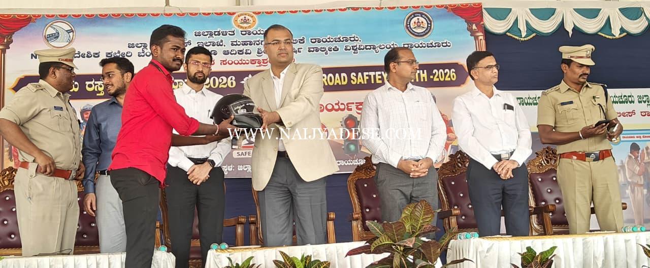 ರಾಯಚೂರು ಜನವರಿ 31 (ಕರ್ನಾಟಕ ವಾರ್ತೆ): ಇಲ್ಲಿನ ಜಿಲ್ಲಾಡಳಿತ, ಜಿಲ್ಲಾ ಪೊಲೀಸ್ ಇಲಾಖೆ, ಮಹಾನಗರ ಪಾಲಿಕೆ ರಾಯಚೂರು, ಎನ್ಹೆಚ್ಎಐ ಪ್ರಾದೇಶಿಕ ಕಚೇರಿ ಬೆಂಗಳೂರು ಹಾಗೂ ಆದಿಕವಿ ಶ್ರೀ ಮಹರ್ಷಿ ವಾಲ್ಮೀಕಿ ವಿಶ್ವವಿದ್ಯಾಲಯ ಇವರ ಸಂಯುಕ್ತಾಶ್ರಯದಲ್ಲಿ ರಾಷ್ಟ್ರೀಯ ರಸ್ತೆ ಸುರಕ್ಷತಾ ಮಾಸ-2026ರ ಅಂಗವಾಗಿ ರಸ್ತೆ ಅಪಘಾತಗಳನ್ನು ತಡೆಗಟ್ಟುವ ಮತ್ತು ರಸ್ತೆ ಸುರಕ್ಷತೆಯ ಬಗ್ಗೆ ಅರಿವು ಮೂಡಿಸುವ ನಿಟ್ಟಿನಲ್ಲಿ ವಿನೂತನ ಜಾಗೃತಿ ಅಭಿಯಾನ ನಡೆಯಿತು.