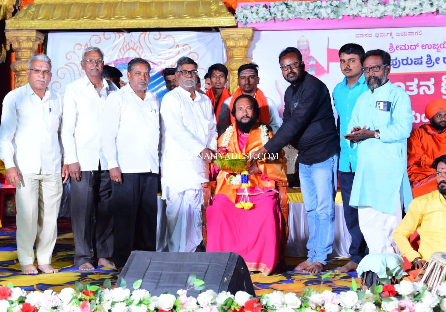 ತಾಳಿಕೋಟೆ: ತಾಲೂಕಿನ ಚಬನೂರ ಗ್ರಾಮದ ಸಿದ್ದೀಪುರುಷ ಶ್ರೀ ರಾಮಲಿಂಗೇಶ್ವರ ನೂತನ ಮಠ ಹಾಗೂ ಸಭಾಭವನದ ಲೋಕಾರ್ಪಣೆ ಕಾರ್ಯಕ್ರಮದ ಅಂಗವಾಗಿ ಹಮ್ಮಿಕೊಂಡ ಪುರಾಣ ಕಾರ್ಯಕ್ರಮದಲ್ಲಿ ಶಳ್ಳಗಿ ಗ್ರಾಮದ ಜಂಗಮ ಸಮಾಜದಿಂದ ಜ್ಯೋತಿಷ್ಯ ರತ್ನ ಶ್ರೀರಾಮಲಿಂಗಯ್ಯ ಮಹಾಸ್ವಾಮಿಗಳಿಗೆ ಅವರ ಆಧ್ಯಾತ್ಮಿಕ ಸೇವೆಗಾಗಿ ಗೌರವ ಸಮರ್ಪಣೆ ಸಲ್ಲಿಸಲಾಯಿತು. ಕೊಡೆಕಲ್ಲದ ಪೂಜ್ಯ ಶಿವಕುಮಾರ ಶ್ರೀಗಳು, ನಾವದಗೀಯ ಷ.ಬ್ರ.ಶ್ರೀ ರಾಜಗುರು ರಾಜೇಂದ್ರ ಶಿವಾಚಾರ್ಯರು, ದೇವರ ಹಿಪ್ಪರಗಿ ಪರದೇಶಿ ಮಠದ ಶ್ರೀ ಶಿವಯೋಗಿ ಶಿವಾಚಾರ್ಯರು, ಗಣ್ಯರಾದ ಶರಣಯ್ಯ ಹಿರೇಮಠ, ಹೊಂಬೆಸ್ವಾಮಿ ಹಿರೇಮಠ,ಕಾಶಿರಾಯಗೌಡ ದೇಸಾಯಿ, ಪಂಚಾಕ್ಷರಿ ಹಿರೇಮಠ, ನಾಗಯ್ಯ ಮಠ, ಶರಣಗೌಡ ಪೊಲೀಸ್ ಪಾಟೀಲ (ಕರಿಭಾವಿ), ಡಾ.ಸೋಮಶೇಖರಯ್ಯ ಹಿರೇಮಠ(ಮಿಣಜಗಿ), ಮಲ್ಲಯ್ಯ ಹಿರೇಮಠ ಮತ್ತೀತರರು ಇದ್ದರು.