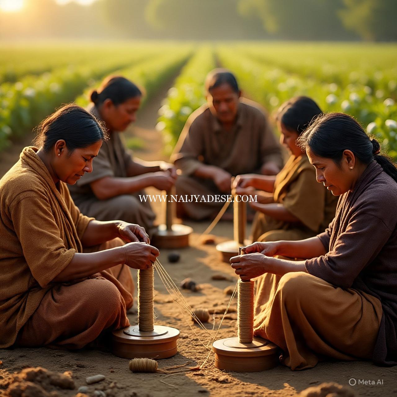 ಹತ್ತಿ ಬೆಳೆ,ಕೈಯಿಂದ ಹತ್ತಿಯನ್ನು ಸಂಸ್ಕರಿಸುವುದು.ಚರಕದಲ್ಲಿ ನೂಲುವುದು,