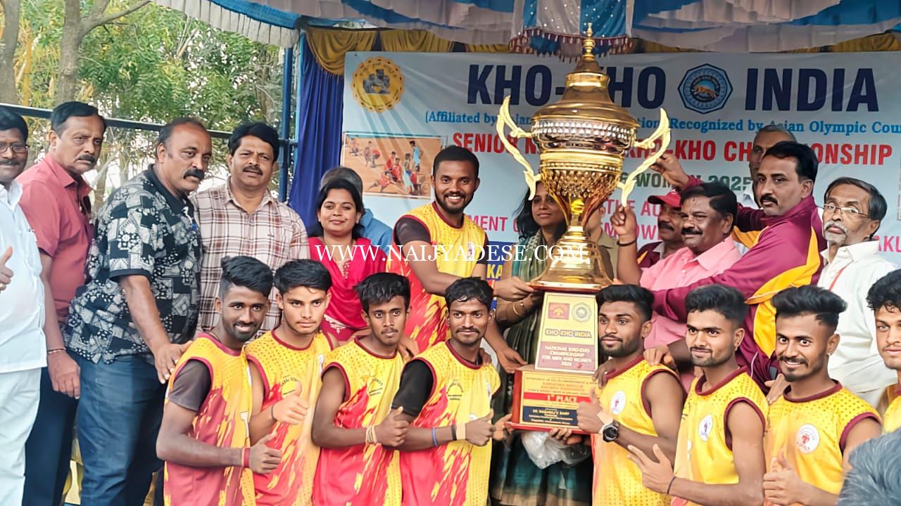 ತುಮಕೂರು: ಖೋ ಖೋ ಇಂಡಿಯಾ ಹಾಗೂ ಕರ್ನಾಟಕ ಅಮೆಚೂರ್ ಖೋ ಖೋ ಸಂಸ್ಥೆಯ ಸಹಯೋಗದಲ್ಲಿ ತುಮಕೂರಿನ ಪಿವಿ ಅಂಗಳದಲ್ಲಿ ಆಯೋಜಿಸಲಾದ ಹಿರಿಯರ ರಾಷ್ಟ್ರೀಯ ಖೋ ಖೋ ಚಾಂಪಿಯನ್ಶಿಪ್ನಲ್ಲಿ ಆತಿಥೇಯ ಕರ್ನಾಟಕ ಪುರುಷರ ತಂಡವು ಪ್ರಥಮ ಬಾರಿಗೆ ಚಾಂಪಿಯನ್ ಆಗಿ ಹೊರಹೊಮ್ಮಿ ರಾಜ್ಯಕ್ಕೆ ಅಪಾರ ಹೆಮ್ಮೆ ತಂದಿದೆ.