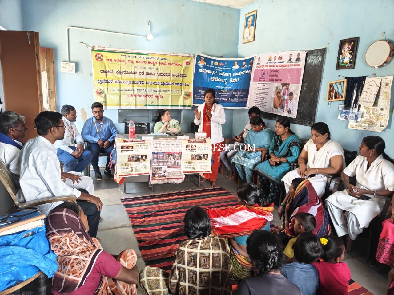 ಜಿಲ್ಲಾ ಆಡಳಿತ ಜಿಲ್ಲಾ ಪಂಚಾಯತ್ ರಾಯಚೂರು ಜಿಲ್ಲಾ ಆರೋಗ್ಯ ಮತ್ತು ಕುಟುಂಬ ಕಲ್ಯಾಣ ಇಲಾಖೆ ರಾಯಚೂರು ತಾಲೂಕ ಆರೋಗ್ಯ ಅಧಿಕಾರಿಗಳ ಕಾರ್ಯಾಲಯ ಸಿಂಧನೂರ್ ಪ್ರಾಥಮಿಕ ಆರೋಗ್ಯ ಕೇಂದ್ರ ರಾಗಲಪರ್ವಿ ಇವರ ಸಂಯುಕ್ತ ಆಶ್ರಯದಲ್ಲಿ ಬುದ್ದಿನ್ನಿ ಗ್ರಾಮದಲ್ಲಿ ರಾಷ್ಟ್ರೀಯ ಫ್ಲೋರೋಸಿಸ್ ತಡೆ ಮತ್ತು ನಿಯಂತ್ರಣ ಕಾರ್ಯಕ್ರಮ ಹಮ್ಮಿಕೊಳ್ಳಲಾಯಿತು ಈ ಕಾರ್ಯಕ್ರಮವನ್ನು ಜ್ಯೋತಿ ಬೆಳಗಿಸುವ ಮೂಲಕ ಚಾಲನೆ ಮಾಡಲಾಯಿತು. ಈ ಕಾರ್ಯಕ್ರಮದಲ್ಲಿ ಫ್ಲೋರೊಸಿಸ್ ಜಾಗೃತಿ ಕಾರ್ಯಕ್ರಮ ಹಾಗೂ ಪ್ಲೋರೋಸಿಸ್ ಉಚಿತ ತಪಾಸಣಾ ಕಾರ್ಯಕ್ರಮವನ್ನು ಹಮ್ಮಿಕೊಂಡು ಅದು ಮತ್ತು ಸಾರ್ವಜನಿಕರಿಗೆ ಆರೋಗ್ಯವನ್ನು ತಪಾಸಣೆ ಮಾಡಲಾಯಿತು . ಫ್ಲೋರೋಸಿಸ್ ಎಂದರೆ ಇದೊಂದು ದೀರ್ಘಕಾಲಿಕ ಕಾಯಿಲೆಯಾಗಿದ್ದು ಇದು ಚಯಪಚಯ ಕಾಯಿಲೆಯಾಗಿದ್ದು ಇದು ಅಂತರಜಲ ಫ್ಲೋರೇಡ್ ಅಂಶ ಜಾಸ್ತಿ ಇರುವ ನೀರು ಕುಡಿಯುವ ಮೂಲಕ ಬರುವ ಕಾಯಿಲೆಯಾಗಿದೆ ಎಂದು ಡಾ. ಶ್ವೇತಾಂಬರಿ ಆಯುಷ್ ವೈದ್ಯಾಧಿಕಾರಿಗಳು ಮಾತನಾಡಿದರು. ನಂತರ ಗುರುಪ್ರಸಾದ್ ಫ್ಲೋರೋಸಿಸ್ ರಾಯಚೂರು ಇವರು ಮಾತನಾಡಿ ಫ್ಲೋರೋಸಿಸ್ ತಡೆ ಹಾಗೂ ಲಕ್ಷಣಗಳು ನಿಯಂತ್ರಣದ ಕುರಿತು ಸಾರ್ವಜನಿಕರಿಗೆ ಮಾಹಿತಿ ನೀಡಿದರು ನಂತರ ಡಾ. ಅಪ್ರೋಜಾ ಬಾನು ದಂತ ವೈದ್ಯರು ಪ್ರಾಥಮಿಕ ಆರೋಗ್ಯ ಕೇಂದ್ರ ಜವಳಗೆರ ಇವರು ಮಾತನಾಡಿ ಮಕ್ಕಳಲ್ಲಿ ದಂತ ಪ್ಲೊರೋಸಿಸ್ ಬರುವುದು ಹೆಚ್ಚು ಸರ್ವಸಾಮಾನ್ಯ ನೀರು ಕುಡಿಯುವ, ಅನೇಕ ರೀತಿಯ ಪಾನೀಯ ಕುಡಿಯುದು, ಜಂಕ್ ಫುಡ್ ಸೇವನೆ ಮೂಲಕ ಆಹಾರ ಪದ್ಧತಿ ಬದಲಾವಣೆ ಮತ್ತು ಪೇಸ್ಟ್ ಬಳಸುವುದು ಕಡಿಮೆ ಮಾಡಿದಾಗ ಇದನ್ನು ತಡೆಯುವ ಸಾಧ್ಯತೆ ಇರುತ್ತದೆ ಎಂದರು ತದನಂತರ ಗೀತಾ ಹಿರೇಮಠ ಕ್ಷೇತ್ರ ಆರೋಗ್ಯ ಶಿಕ್ಷಣಾಧಿಕಾರಿಗಳು ತಾಲೂಕ ಆರೋಗ್ಯ ಅಧಿಕಾರಿಗಳ ಕಾರ್ಯಾಲಯ ಸಿಂಧನೂರು ಮಾತನಾಡಿ ಫ್ಲೋರೋಸಿಸ್ ಅಲ್ಲಿ ಮೂರು ತರದ ಕಾಯಿಲೆಗಳು ದಂತ ಫ್ಲೋರೋಸಿಸ್ ಮೂಳೆ ಫ್ಲೋರೋಸಿಸ್ ಬರುವುದು ಇದನ್ನು ತಡೆಯುವುದು ಎ ಅನ್ನಂಗ ಸಿ ಅನ್ನಂಗ ಪೋಷಕಾಂಶಗಳಿರುವ ಆಹಾರವು ಸೇವನೆಯನ್ನು ಮಾಡುವುದು ಸೂಕ್ತ ಚಿಕಿತ್ಸೆ ಪಡೆದುಕೊಳ್ಳುವುದು ಸರಿಯಾದ ಕ್ರಮವಾಗಿದೆ ಎಂದು ಹೇಳಿದರು ಸ್ಪರ್ಶ್ ಕುಷ್ಟರೊಗ ಜಾಗೃತಿ ಅಭಿಯಾನ, ರಾಯಚೂರು ಉತ್ಸವ ದ ಕುರಿತು ಹೇಳಲಾಯಿತು,ಸದರಿ ಕಾರ್ಯಕ್ರಮದಲ್ಲಿ, ಶಿವಪ್ಪ ಪಂಚಾಯತ್ ಸದಸ್ಯರು, ಗಂಗಾಧರ್ ಎಲ್ ಟಿ ಓ,ರಾಯಚೂರ್, ಸಿ,ಎಚ್,ಒ ಅಧಿಕಾರಿಗಳಾದ ರಾಜಕುಮಾರ ಹಾಗೂ ಜಯ, ಪಕೀರಚಂದ್ ಸೀನಿಯರ್ ಎಚ್ ಐ ಓ, ಶರಣಮ್ಮ ಎಚ್ಐಒ, ಪ್ರಾಥಮಿಕ ಆರೋಗ್ಯ ಸುರಕ್ಷತಾ ಅಧಿಕಾರಿಗಳಾದ ಗಂಗಮ್ಮ ಅಂಬಮ್ಮ ಅಂಗನವಾಡಿ ಕಾರ್ಯಕರ್ತರು ಆಶಾ ಕಾರ್ಯಕರ್ತೆಯರು ಅಂಗನವಾಡಿ ಸಹಾಯಕಿ, ಹಿರಿಯ ನಾಗರಿಕರು ಉಪಸ್ಥಿತರಿದ್ದರು.