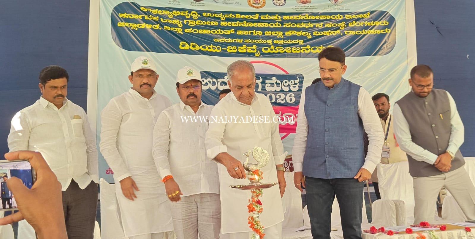 ರಾಯಚೂರು ಫೆ. 06 (ಕರ್ನಾಟಕ ವಾರ್ತೆ) : ಸರ್ಕಾರವು ಉದ್ಯೋಗ ಮೇಳಗಳನ್ನು ರಾಜ್ಯದಲ್ಲಿ ಹೆಚ್ಚು ಹೆಚ್ಚು ಆಯೋಜಿಸುವ ಮೂಲಕ ನಿರುದ್ಯೋಗ ನಿವಾರಣೆಗಾಗಿ ಶ್ರಮಿಸುತ್ತಿದೆ ಎಂದು ಸಣ್ಣ ನೀರಾವರಿ ಹಾಗೂ ವಿಜ್ಞಾನ ಮತ್ತು ತಂತ್ರಜ್ಞಾನ ಇಲಾಖೆ ಸಚಿವ ಎನ್.ಎಸ್. ಭೋಸರಾಜು ಅವರು ಹೇಳಿದರು.ಎಡೆದೊರೆ ನಾಡು ರಾಯಚೂರು ಉತ್ಸವದ ಅಂಗವಾಗಿ ರಾಯಚೂರಿನ ಕೃಷಿ ವಿ.ವಿ. ಆವರಣದಲ್ಲಿ ಉತ್ಸವದ ಎರಡನೆ ದಿನವಾದ ಶುಕ್ರವಾರ ಕೌಶಲ್ಯಾಭಿವೃದ್ಧಿ ಇಲಾಖೆ, ಕರ್ನಾಟಕ ರಾಜ್ಯ ಗ್ರಾಮೀಣ ಜೀವನೋಪಾಯ ಸಂವರ್ಧನ ಸಂಸ್ಥೆ, ಜಿಲ್ಲಾಡಳಿತ, ಜಿಲ್ಲಾ ಪಂಚಾಯತ್ ಹಾಗೂ ಜಿಲ್ಲಾ ಕೌಶಲ್ಯ ಮಿಷನ್ ಇವರ ಸಂಯುಕ್ತ ಆಶ್ರಯದಲ್ಲಿ ಏರ್ಪಡಿಸಲಾಗಿದ್ದ ಉದ್ಯೋಗ ಮೇಳ ಉದ್ಘಾಟಿಸಿ ಅವರು ಮಾತನಾಡಿದರು.