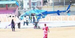 ಮಕ್ಕಳು ಹಾಗೂ ಜನ ಸಾಮಾನ್ಯರು ಕ್ರೀಡಾಂಗಣದ ಸುತ್ತ ಭಾರಿ ಸಂಖ್ಯೆಯಲ್ಲಿ ನೆರೆದು ಹೆಲಿಕಾಪ್ಟರ್ ಹಾರಾಡುವುದನ್ನು ನೋಡಿ ಕಣ್ತುಂಬಿಕೊಳ್ಳುತ್ತಿದ್ದಾರೆ.