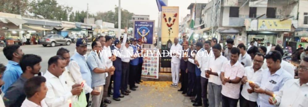 ಅದರಂತೆ ಪಟ್ಟಣದ ಬಸ್ ನಿಲ್ದಾಣ ವೃತ್ತದಲ್ಲಿ ಮಾಜಿ ಸೈನಿಕರ ಸಂಘದ ನೇತೃತ್ವದಲ್ಲಿ ಮಾಜಿ ಸೈನಿಕರು ಹಾಗೂ ಶಾಸಕ ಮಾನಪ್ಪ ವಜ್ಜಲ್ ಸೇರಿದಂತೆ ಅನೇಕ ಮುಖಂಡರು ಕ್ಯಾಂಡಲ್ ಹಿಡಿದು ನಮನ ಸಲ್ಲಿಸಿದರು. ಬಳಿಕ ಗಡಿಯಾರ ವೃತ್ತದವರೆಗೆ ತೆರಳಿ ಅಲ್ಲಿಯೂ ಕ್ಯಾಂಡಲ್ ಹಚ್ಚಿ ನಮನ ಸಲ್ಲಿಸಿದರು.