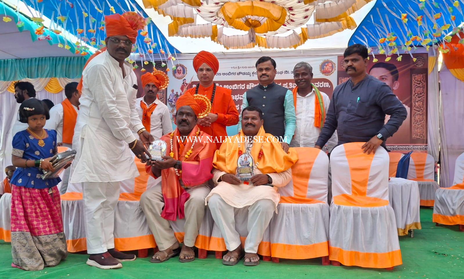 ತಾಳಿಕೋಟಿ: ಪಟ್ಟಣದಲ್ಲಿ ಜರುಗಿದ ಶ್ರೀ ನಿಜ ಶರಣ ಅಂಬಿಗರ ಚೌಡಯ್ಯನವರ ಪ್ರತಿಮೆ ಅನಾವರಣ, ನೂತನ ಸಭಾಭವನ ಉದ್ಘಾಟನೆ ಹಾಗೂ ಶ್ರೀ ನಿಜಶರಣ ಅಂಬಿಗರ ಚೌಡಯ್ಯನವರ ಅನುಭವ ಮಂಟಪ ಶಂಕುಸ್ಥಾಪನೆ ಅಂಗವಾಗಿ ಹಮ್ಮಿಕೊಂಡ ಧರ್ಮಸಭೆಯಲ್ಲಿ ಶ್ರೀ ನಿಜ ಶರಣ ಅಂಬಿಗರ ಚೌಡಯ್ಯ ಸಮಾಜದ ತಾಲೂಕ ಅಧ್ಯಕ್ಷ ಪರಶುರಾಮ ಬಿ.ತಂಗಡಗಿ ಹಾಗೂ ರಮೇಶ ಮೂಕಿಹಾಳ ಇವರನ್ನು ಸನ್ಮಾನಿಸಿ ಗೌರವಿಸಲಾಯಿತು.ಪೂಜ್ಯ ಶ್ರೀ ಶಾಂತಭೀಷ್ಮ ಚೌಡಯ್ಯ ಮಹಾಸ್ವಾಮಿಗಳು, ಶಿವಕುಮಾರ ನಾಟೀಕಾರ, ಶಿವಾಜಿ ಮೆಟಗಾರ, ಅಮರೇಶಣ್ಣ ಕಾಮನಕೇರಿ ಹಾಗೂ ಅಂಬಿಗರ ಚೌಡಯ್ಯ ಸಮಾಜದ ಗಣ್ಯರು ಹಿರಿಯರು ಉಪಸ್ಥಿತರಿದ್ದರು.