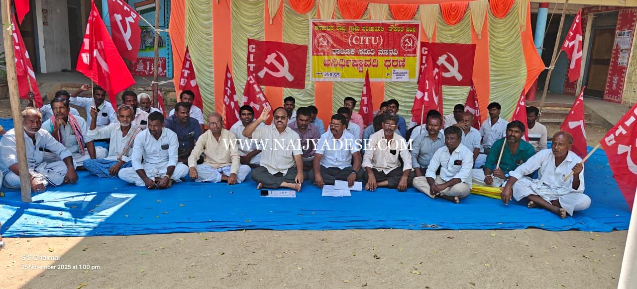 ಮಾನ್ವಿ : ಗ್ರಾಮ ಪಂಚಾಯತಿ ನೌಕರರ ನ್ಯಾಯಸಮ್ಮತ ಬೇಡಿಕೆಗಳನ್ನು ಈಡೇರಿಸದೆ ಮುಂದೆ ತಳ್ಳುತ್ತಿರುವ ಪರಿಸ್ಥಿತಿಯಿಂದ, 25.11.2025ರಿಂದ ತಾಲ್ಲೂಕು ಪಂಚಾಯತ್ ಕಾರ್ಯಾಲಯ ಮಾನ್ವಿ ಎದುರು ಗ್ರಾಮ ಪಂಚಾಯತಿ ನೌಕರರು ಅನಿರ್ಧಿಷ್ಟಾವಧಿ ಧರಣಿ ಆರಂಭಿಸಿದ್ದಾರೆ. ವೇತನ, ನೇಮಕ, ಜೀವವಿಮೆ ಸೇರಿದಂತೆ ಮೂಲಭೂತ ಸೇವಾ ಹಕ್ಕುಗಳಿಗೆ ಸಂಬಂಧಿಸಿದ ಬೇಡಿಕೆಗಳು ಇನ್ನೂ ಜಾರಿಯಾಗದಿರುವುದನ್ನು ನೌಕರರು ಖಂಡಿಸಿದರು.