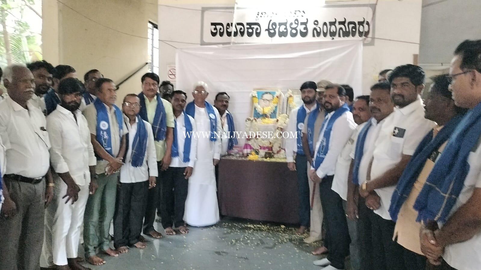 ಈ ವೇಳೆ: ಶಾಸಕ ಹಂಪನಗೌಡ ಬಾದರ್ಲಿ, ನೌಕರರ ಸಂಘದ ಅಧ್ಯಕ್ಷ ಚಂದ್ರಶೇಖರ್ ಹಿರೇಮಠ, ಪಿಕಾರ್ಡ್ ಬ್ಯಾಂಕ್ ಅಧ್ಯಕ್ಷ ಎಂ.ದೊಡ್ಡಬಸವರಾಜ, ಮರಿಯಪ್ಪ, ಆರ್.ಡಿ.ಸಿ.ಸಿ.ಬ್ಯಾಂಕ್ ನಿರ್ದೇಶಕ ಸೋಮನಗೌಡ ಬಾದರ್ಲಿ, ಪೌರಾಯುಕ್ತ ಪಾಂಡುರಂಗ ಇಟಗಿ, ಇಒ ಚಂದ್ರಶೇಖರ್, ಸಮಾಜ ಕಲ್ಯಾಣ ಇಲಾಖೆ ಅಧಿಕಾರಿ ಲಿಂಗಪ್ಪ, ವಸತಿ ನಿಲಯ ಅಧಿಕಾರಿ ಲಿಂಗಪ್ಪ ಅಂಗಡಿ, ಸೇರಿದಂತೆ ಸಮಾಜದ ಮುಖಂಡರು ಭಾಗವಹಿಸಿದ್ದರು.