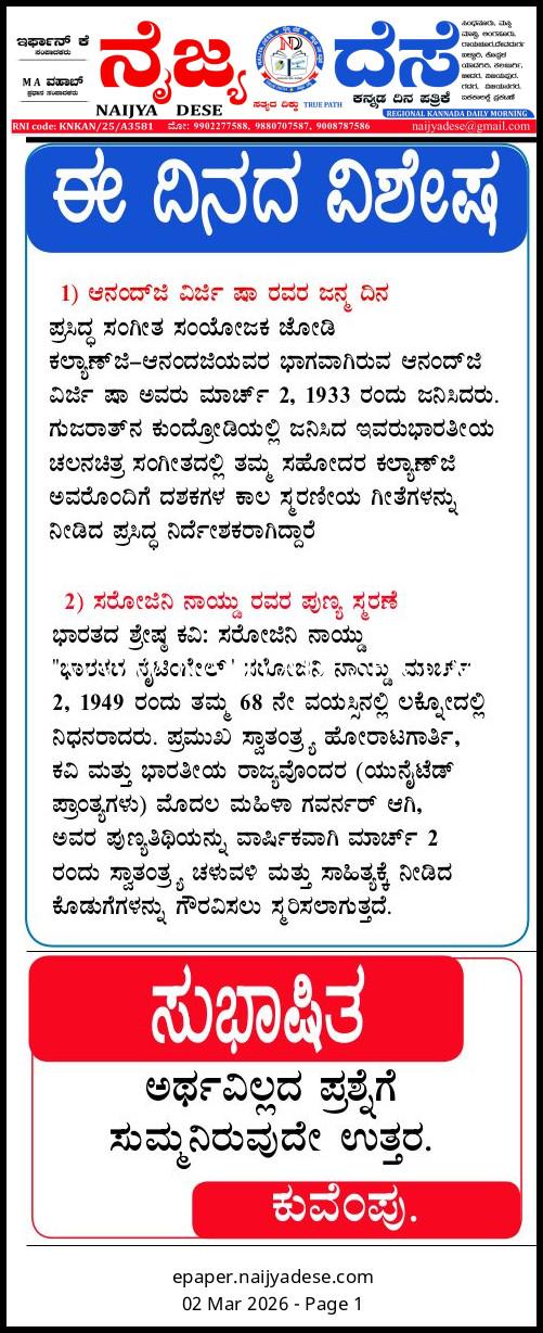 ಈ ದಿನದ ವಿಶೇಷ