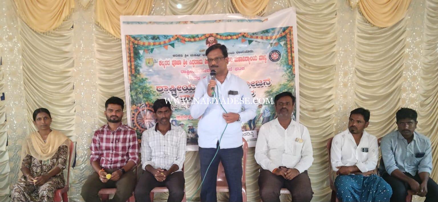 ಅವರು ಸಿರವಾರ ತಾಲೂಕಿನ ಕೆ.ಗುಡದಿನ್ನಿ ಗ್ರಾಮದಲ್ಲಿ ಮಾನ್ವಿ ಪಟ್ಟಣದ ಕಲ್ಮಠದ ಕೆ.ಪಿ.ಎಸ್.ಎಸ್. ಪದವಿ ಮಹಾವಿದ್ಯಾಲಯದ ರಾಷ್ಟ್ರೀಯ ಸೇವಾ ಯೋಜನಾ ಘಟಕ ಆಯೋಜಿಸಿರುವ 2025-26 ನೇ ಸಾಲಿನ ವಿಶೇಷ ಶಿಬಿರದಲ್ಲಿ “ಜನಪದ ಸಾಹಿತ್ಯದ ಪ್ರಸ್ತುತತೆ ” ವಿಷಯ ಕುರಿತು ವಿಶೇಷ ಉಪನ್ಯಾಸ ನೀಡಿದರು.